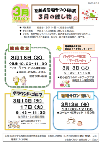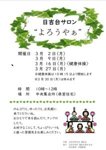 コーヒーサロン「憩い」はコロナ禍での開催ですが、好評いただいております。 今月もどうぞご参加ください。 健康教室は、14日の第2水曜日です。 年末年始休みのお知らせ ★12月17日(土)~1月10日(火)の間、お休みしま […]