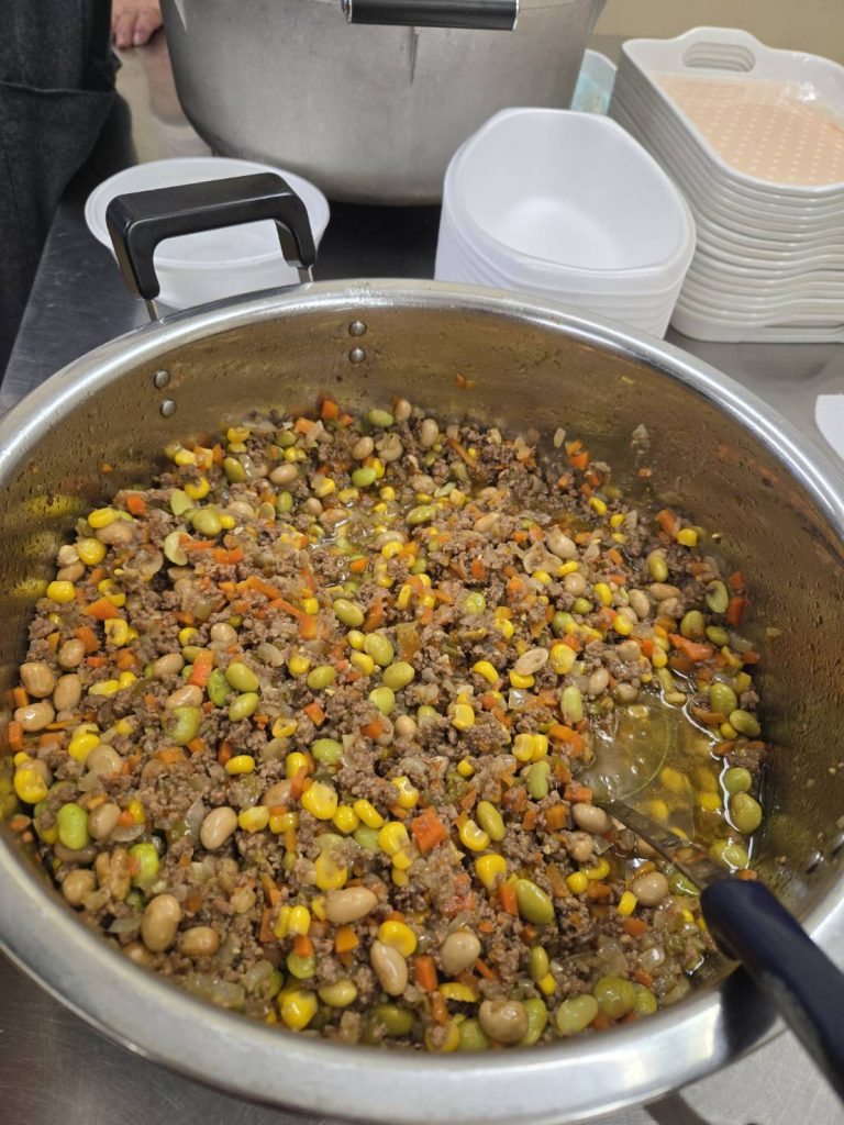 ボランティアスタッフは、小学生、中学生、おとな40人くらいで調理、受付、配膳、来場者の対応に励んでいます。