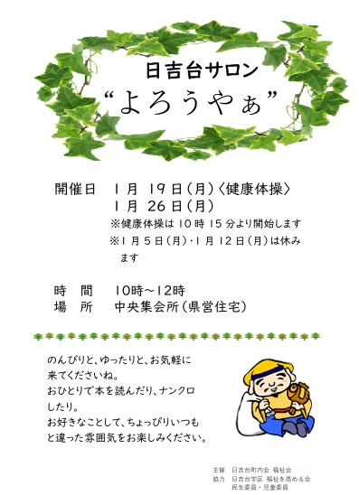 日吉台学区福祉会のお知らせ(県営サロン「よろうやぁ」)