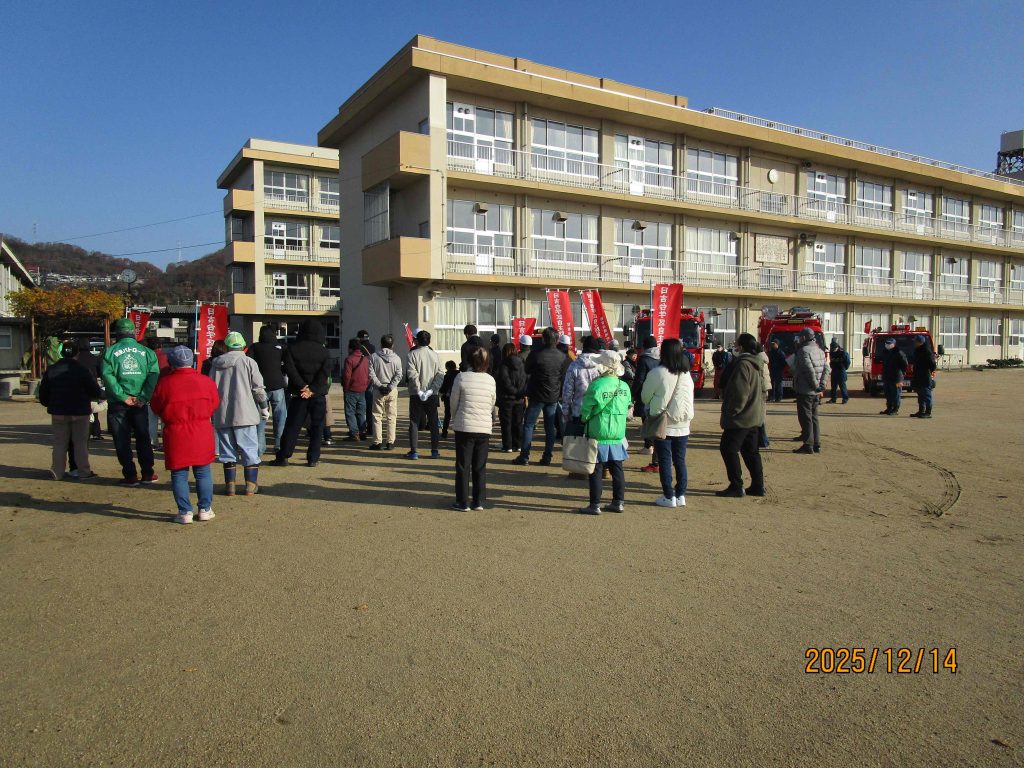 2025年12月14日、日吉台小学校グランドで9時から防災訓練を以下の内容で実施しました。参加された住民の方々役員の皆様お疲れさまでした。今後も防災意識を高めるよう日頃から訓練しておきましょう。