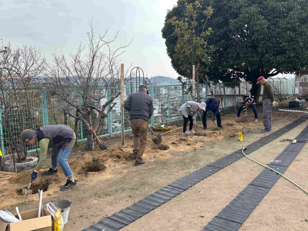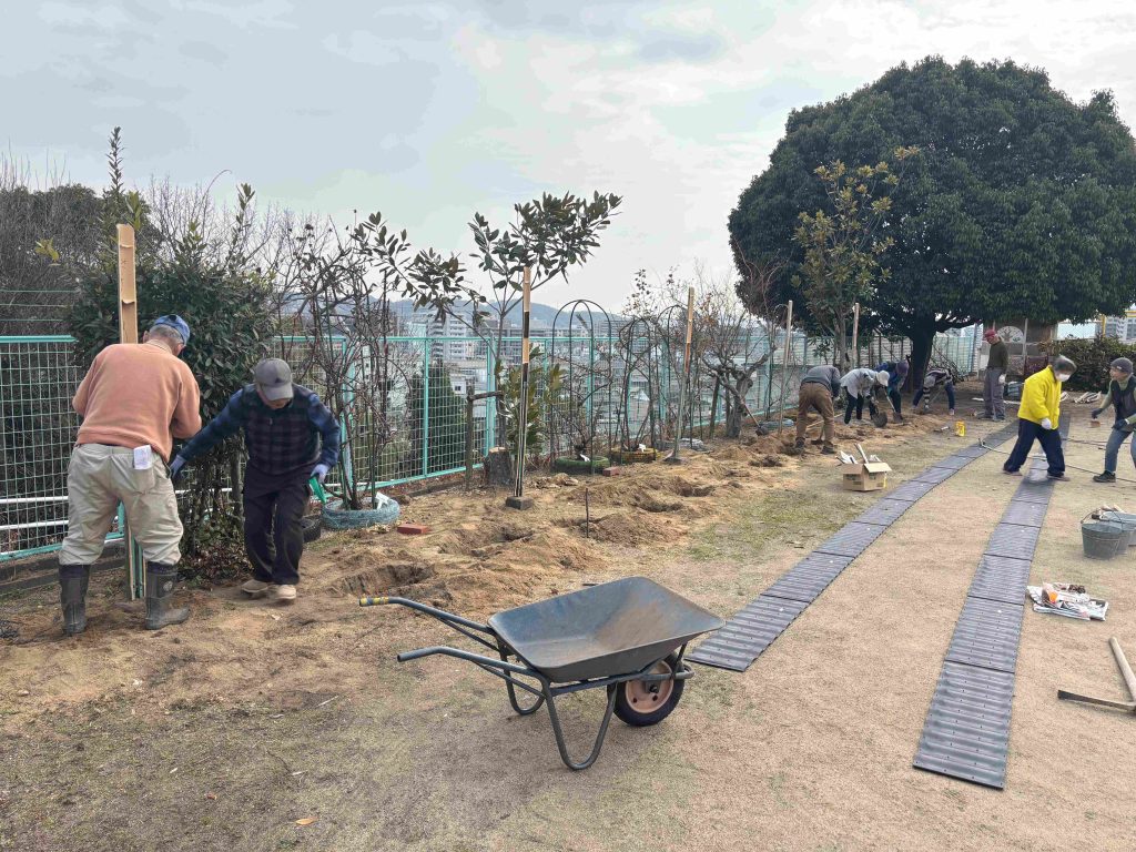 3月初めには作業を終了したいとボランティア一同、寒い中ばらの花がいっぱい咲くことを楽しみに汗を流しています。