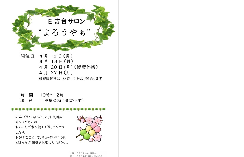 日吉台学区福祉会のお知らせ(県営サロン「よろうやぁ」)